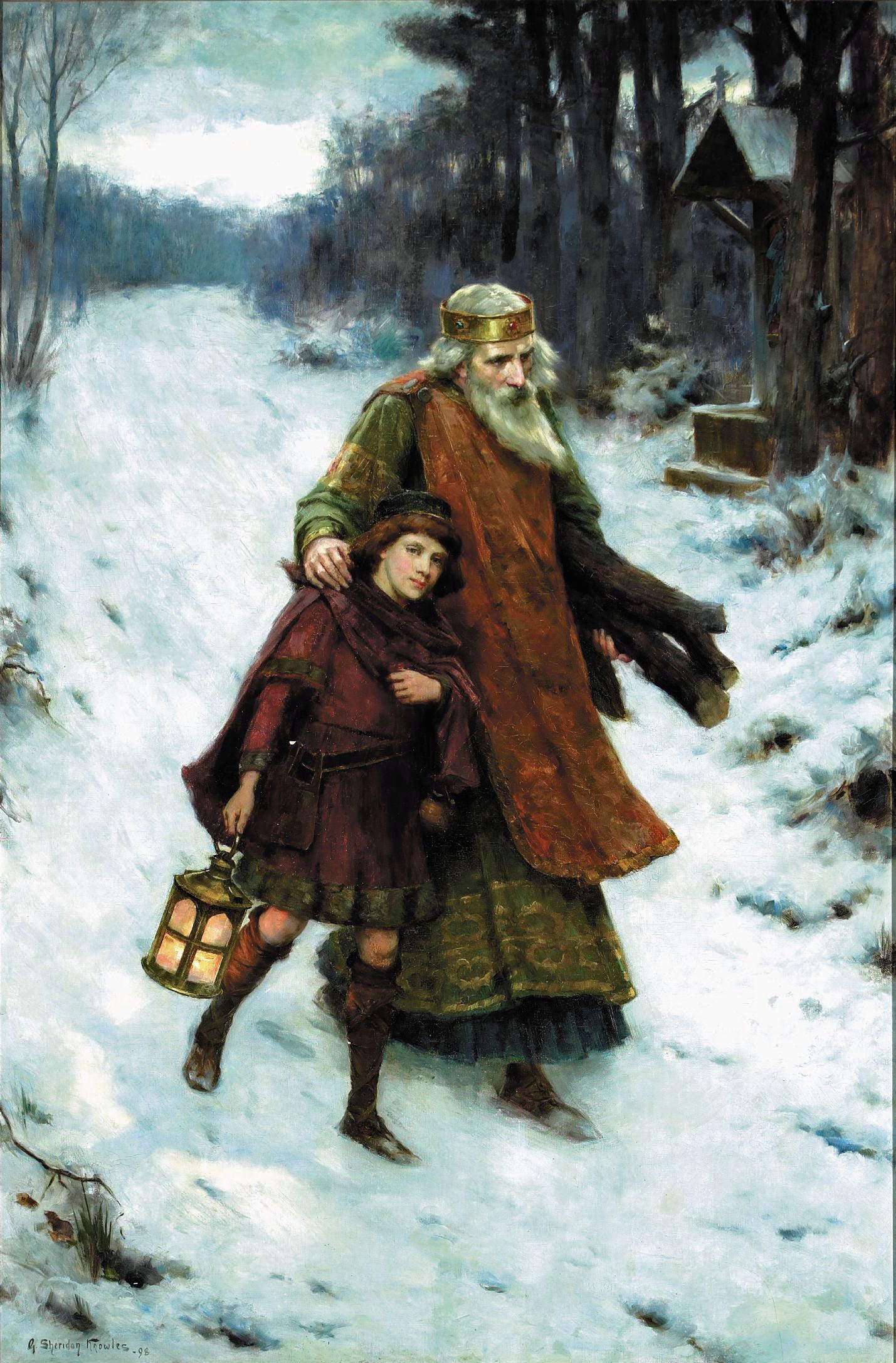 Speaking as it does of a pious and gentle king, braving the fierce winter night to deliver alms to a poor man, it is among the most jovial and wholesome of hymns. In its most famous lines Wenceslas, seeing his lone companion struggle against the deep snow, resolves to face the brunt of the blizzard, urging the page to follow close behind. The boy, shielded from the icy wind, is able to place his feet in the king’s footprints and is inspired to keep going, completing this most beautiful story of Christian charity.